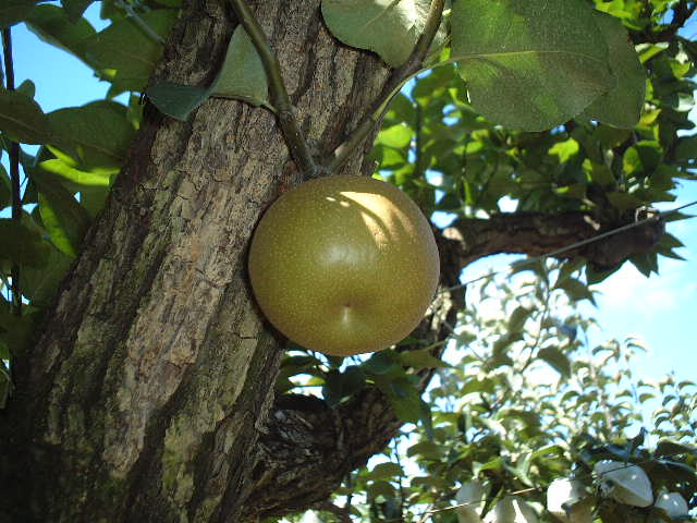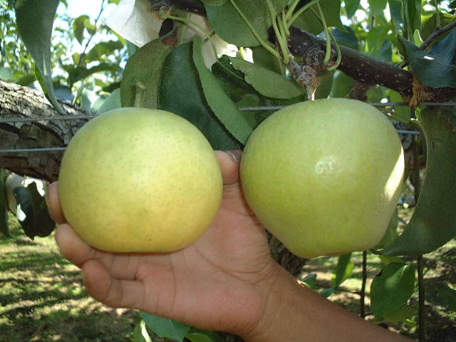 当園には大変珍しい梨があります。それがりんご梨です。 この梨は当園でのみ食べることができ、品種登録されている梨です。梨だけども、りんごの香り漂うなんとも不思議な梨です。 年間150個ほどしか採れない貴重な梨をどうぞご賞味ください。 |